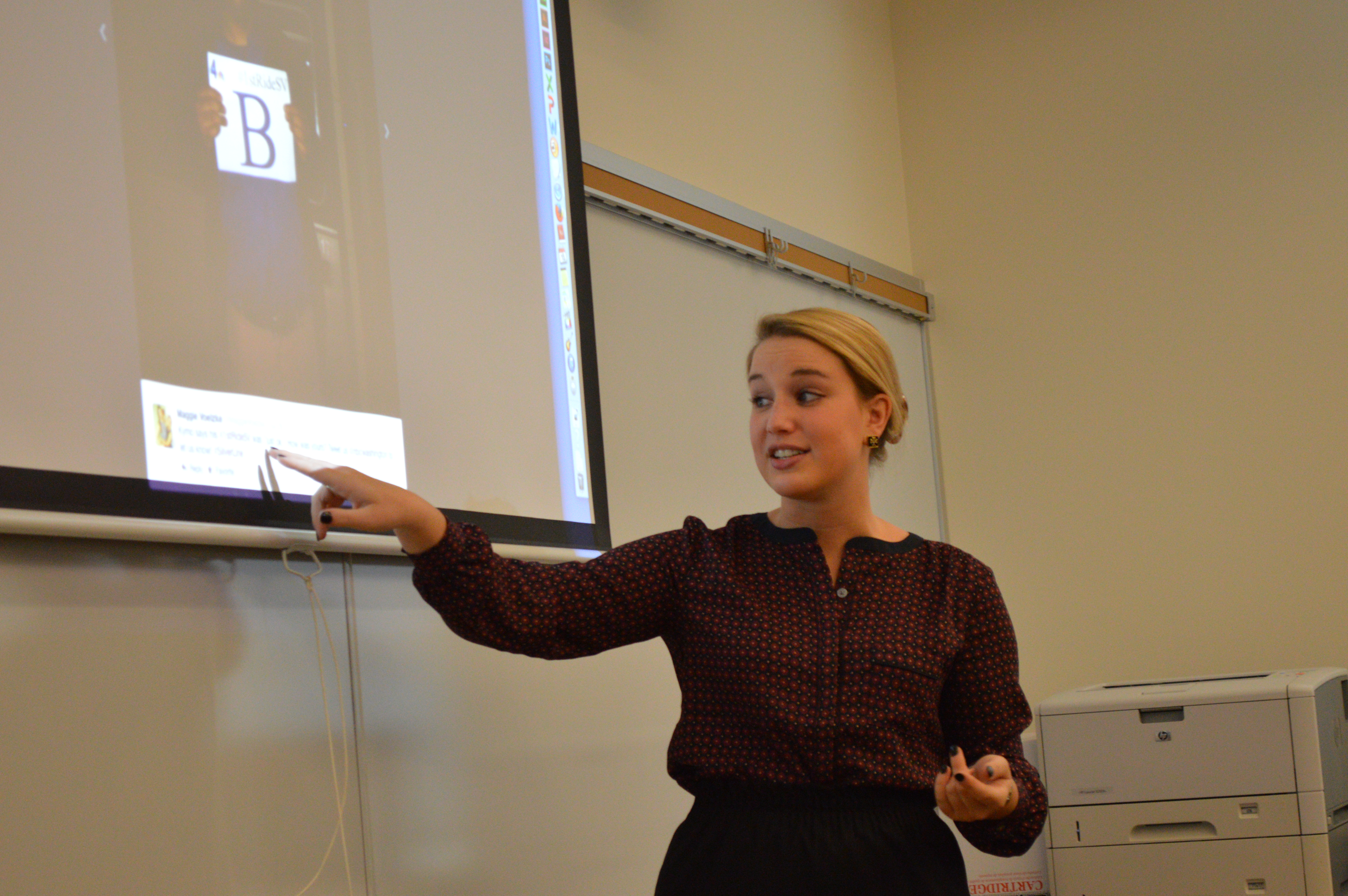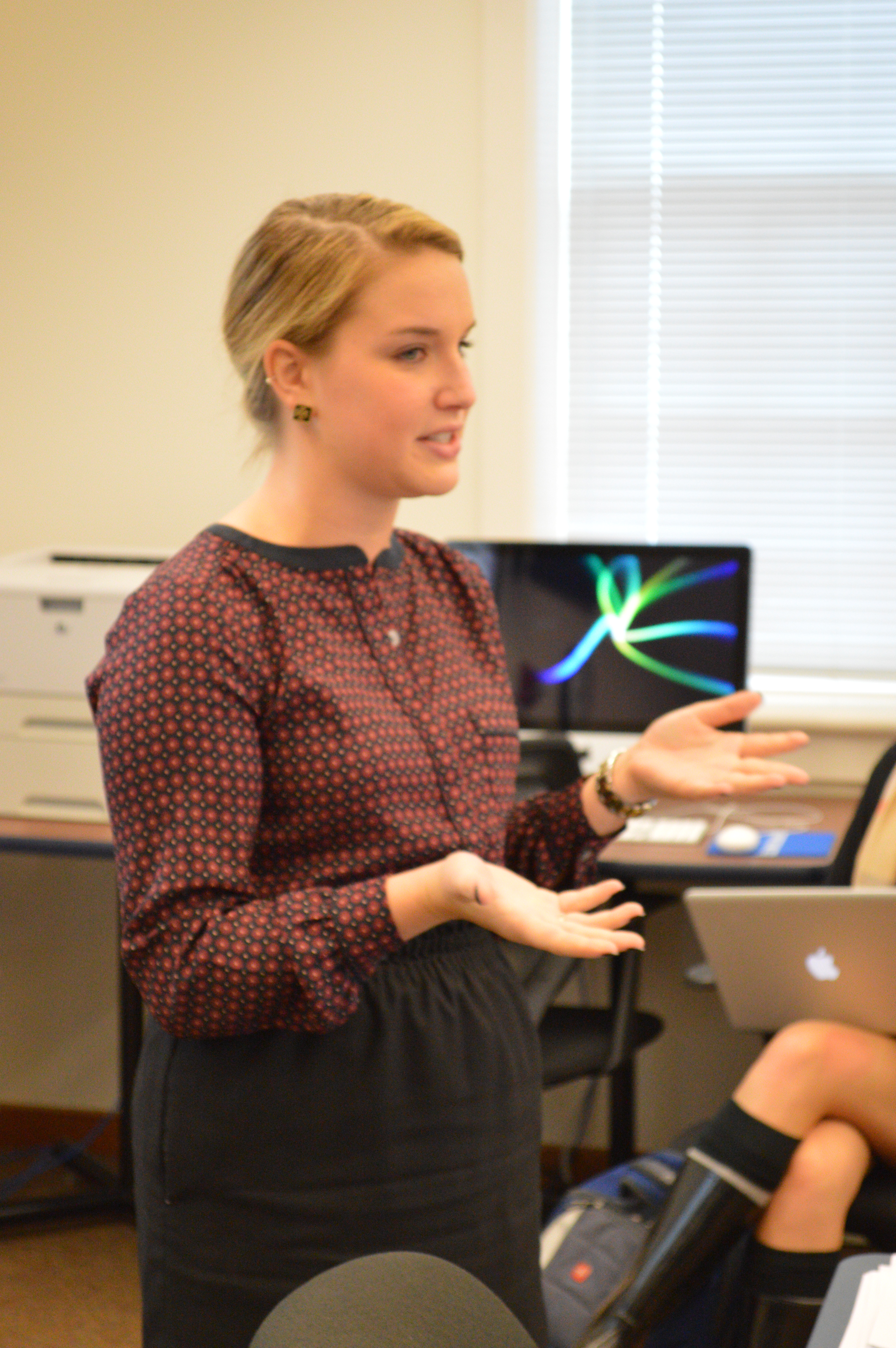 Maggie Voelzke, a senior I had taught three years ago in a first-year comp class on “The Press and the Civil Rights Movement,” then in JOUR201, was working for the NBC affiliate in Washington D.C. One of my 201 students, for her assignment covering the presentations, said Maggie “spent her summer hashtagging, interning on the web team . . . More than just tweeting, Voelzke wrote articles, conducted research, and posted on a variety websites.”