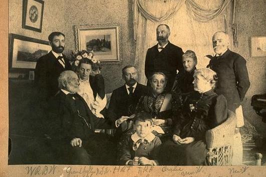 Random ancestors: upper left, my great-grandfather Walter Rufus Boyden Whittier, and in front of him and his bride Mimi Fletcher, Mimi’s grandfather, Lowell, Mass., newspaper editor, congressman and abolitionist Chauncey Knapp.