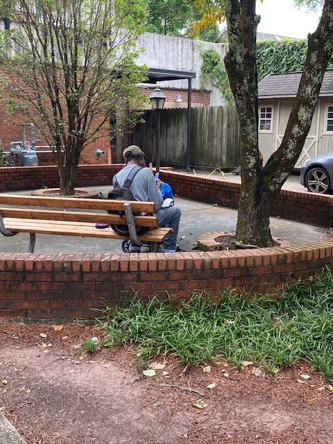 In the pretty courtyard of dogwood trees on the ground floor of Holy Trinity Parish facing Sycamore Place, Decatur’s hungry and dispossessed arrive one or two at a time for help.
