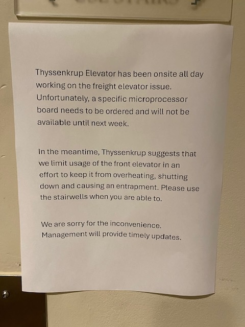 Many of the benefits of Biden’s policies are beginning to show, but they are hard to see because they are investments. For instance, the CHIPS Act is bringing manufacturing of computer circuitry (the cotton-textile dynamo of the 21st century) back to U.S., for good jobs and more control over supplies. How does this affect my life, right now? I can’t see it. But the freight elevator in our condo building is out of order and we are told to minimize use of the only other elevator, using the stairs when we can. The problem is that a specific microprocessor must be ordered and it won’t come until next week, according to the German company, Thyssenkrup, that manages the elevators. Meanwhile, the refrigerator in the half of the duplex we own is broken, and our tenant there is having to use a half-sized refrigerator we gave her while we wait for the repairman to get the parts he needs. It’s on order. The heater burned out and fried the thermostat. I don’t know, but I assume micro-chips are involved.